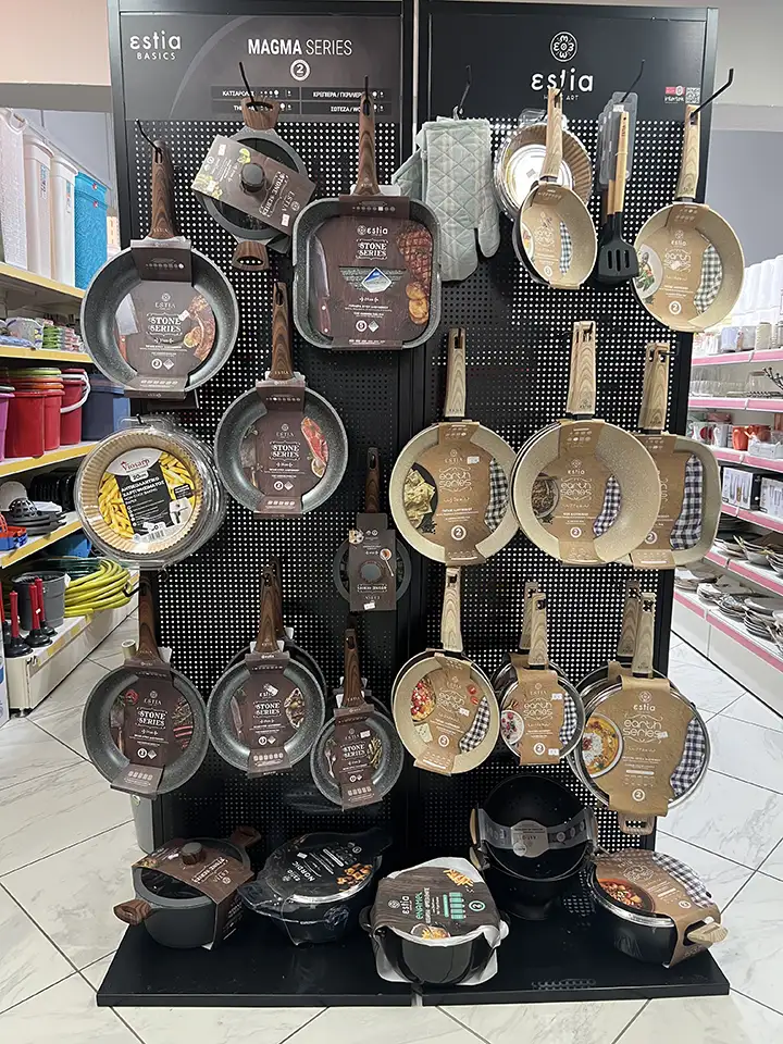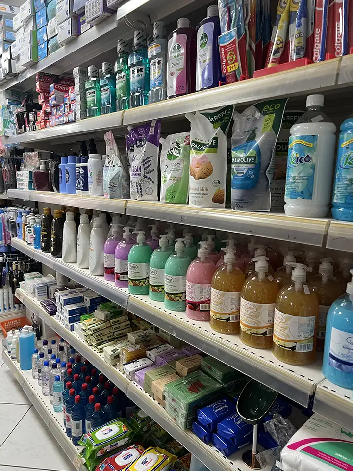 χαρτικά, απορρυπαντικά, καλλυντικά, γυαλικά, ψιλικά, τρόφιμα, πλαστικά, πάνες παιδικές και πάνες ενηλίκων, είδη σπιτιού, είδη καπνιστού κ.ά.